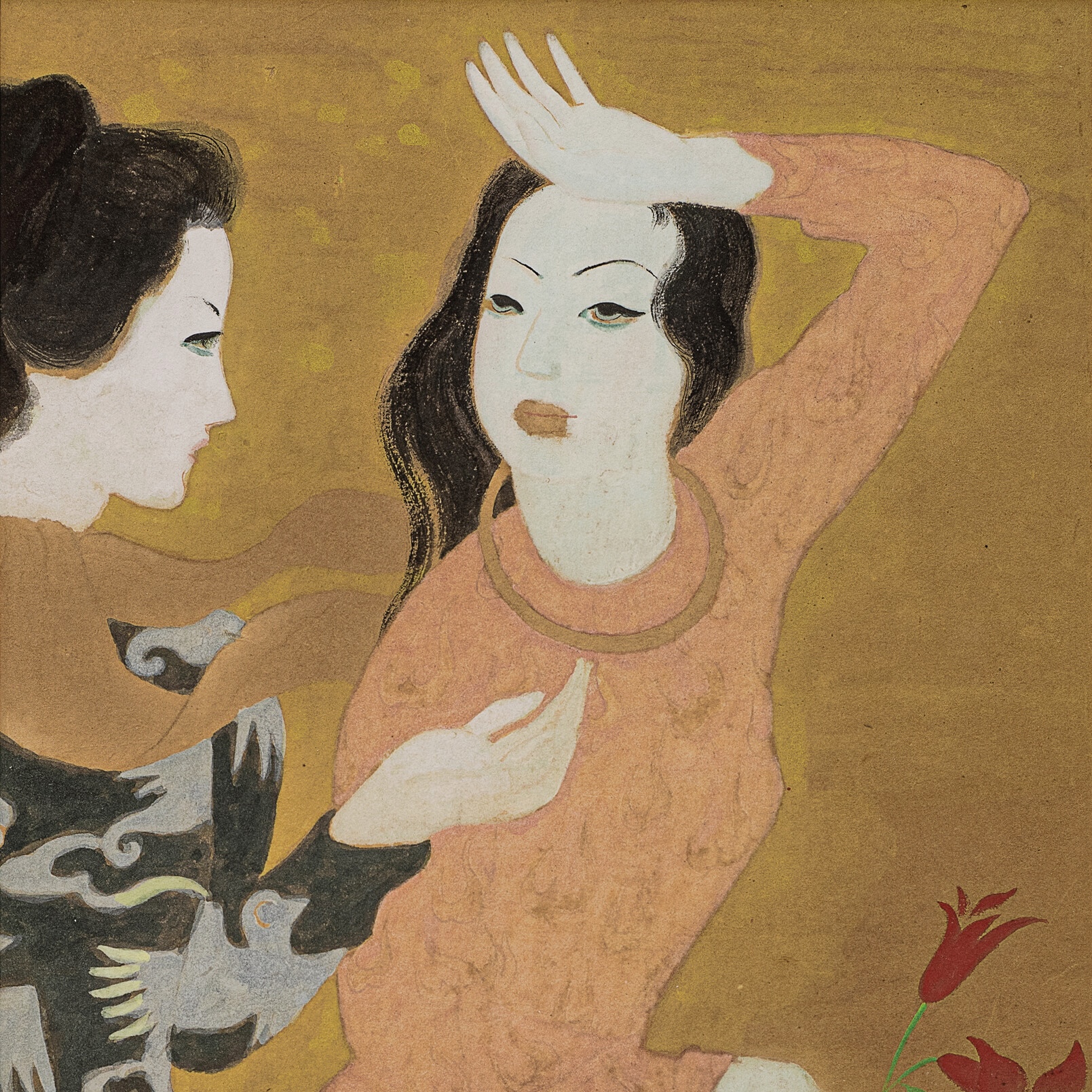 To Ngoc Van (1906-1954) Deux femmes (Two Ladies) signed in Chinese, signed again and dated 'Ngoc Van 41' (lower right) mixed media on paper 59 x 32 cm. (23 1⁄4 x 12 5⁄8 in.) Executed in 1941 Provenance Joseph Inguimberty (gifted from the artist) Michel Inguimberty, son of Joseph Inguimberty (by descent from the above) ...