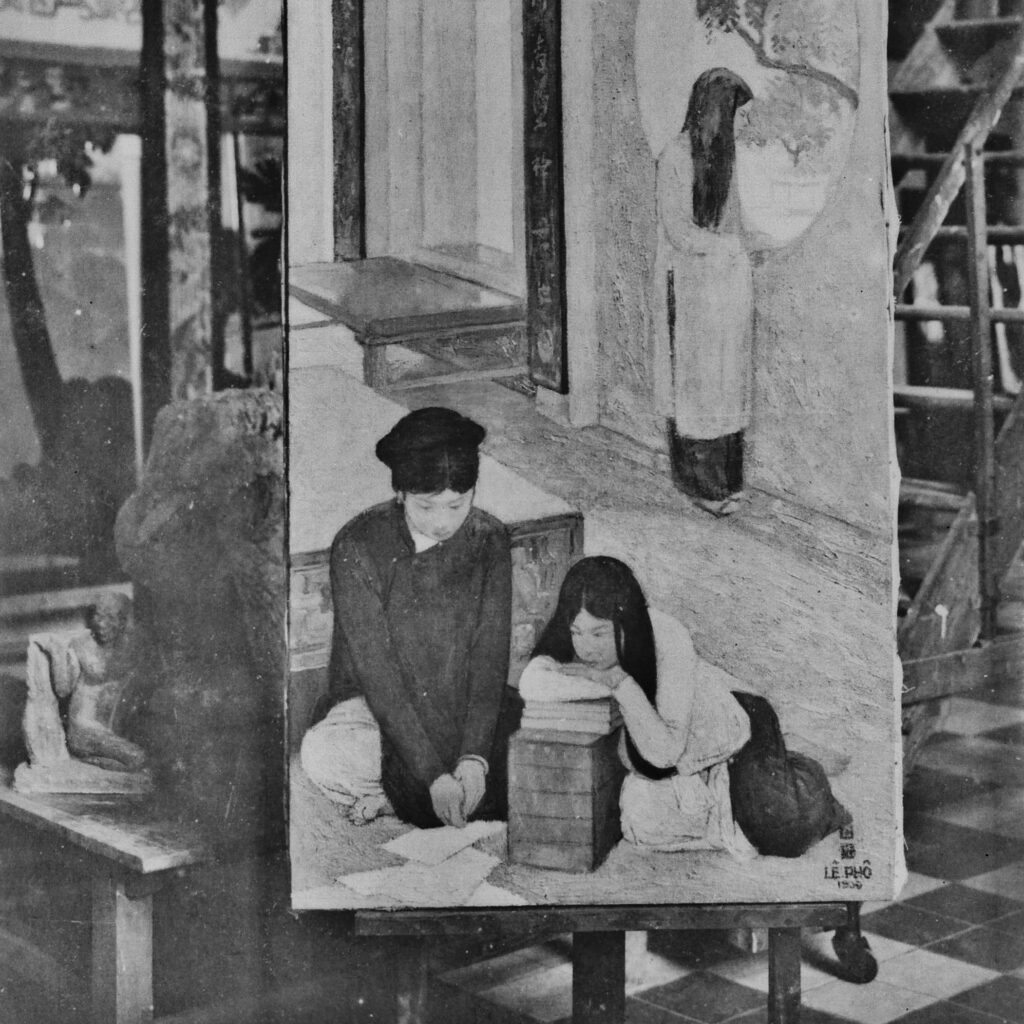 Le Pho’s La maison familiale au Tonkin (The family home in Tonkin) at Salon des artistes, 1930, Grand Palais, Paris Exposed/Exhibited: Salon des artistes, 1930, Grand Palais, Paris Former collection of Dr Houbert, Vichy Coll. Mr. and Mrs. Nguyen Cann, Paris Vietnamese art exhibition, Netherlands, 1997